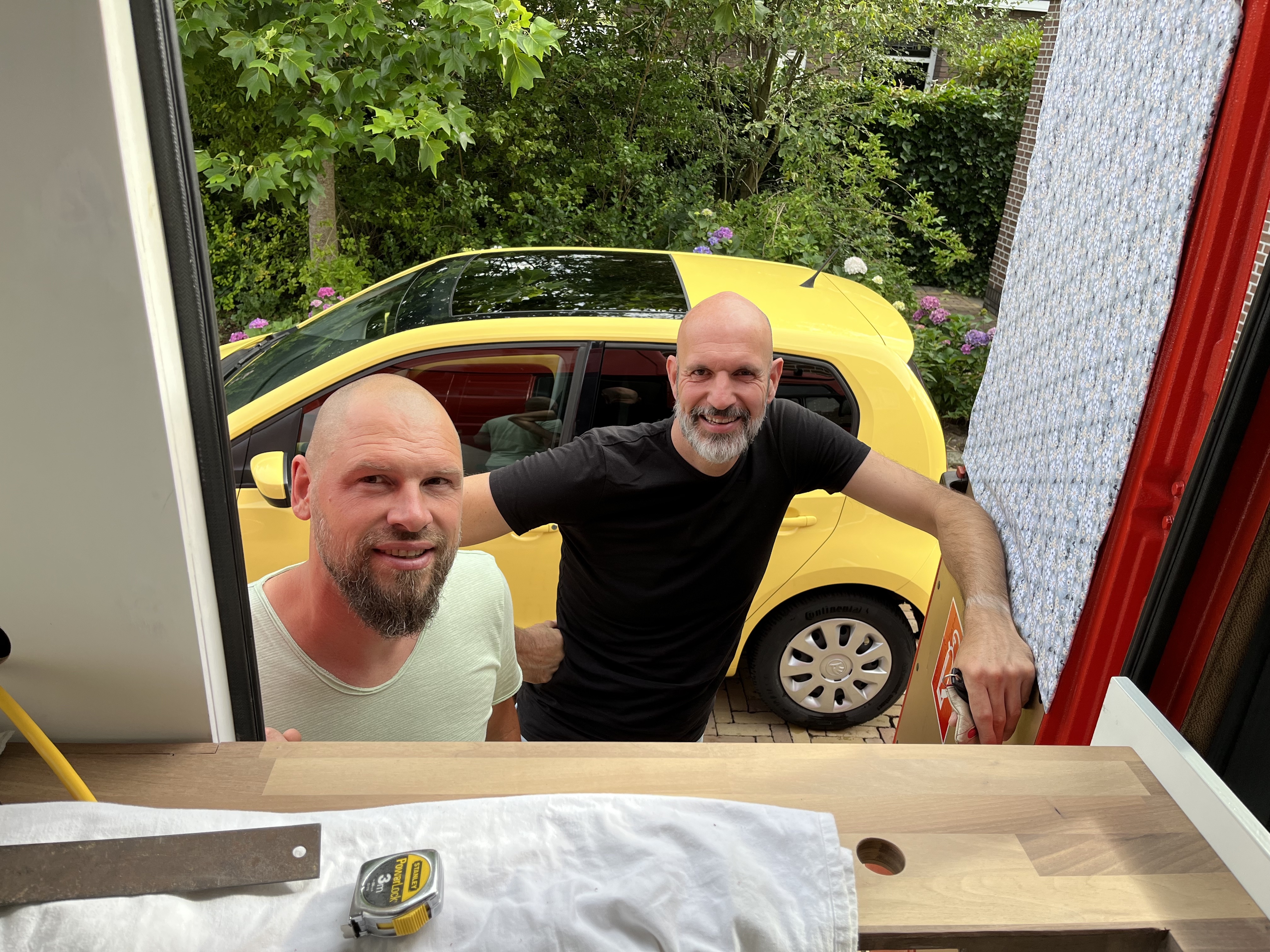 We vertrokken naar Nijkerkerveen om daar 3 weken verder te klussen op de oprit van mijn ouders. Lekker slapen in huis op zolder en douchen wanneer we wilden. Ik had grootse plannen om nog veel sociale dingen te gaan doen, zoals wandelen en op visite gaan. Maar het klussen neemt veel meer tijd in beslag dan ik had ingeschat. Marnix heeft keihard gewerkt en wij zijn heel ver, maar nog niet klaar. Terwijl Marnix hard kluste, naaide ik gordijnen met wat hulp van mijn moeders beste vriendin. Mijn neefjes kwamen ook helpen met klussen. Regelmatig kwam er spontaan bezoek van familie en vrienden. Dat was ik in de afgelopen jaren niet meer gewend, omdat mijn vrienden en familie niet bij mij in de buurt woonden. Ik kon daar wel van genieten. Maar ik merk ook wel dat ik niet meer ben wie ik vroeger was en mijn sociale limiet tegenwoordig sneller is bereikt. Ik vind het zo super gezellig, maar moet echt bijkomen met een boek of een rondje wandelen met de hond van mijn ouders.