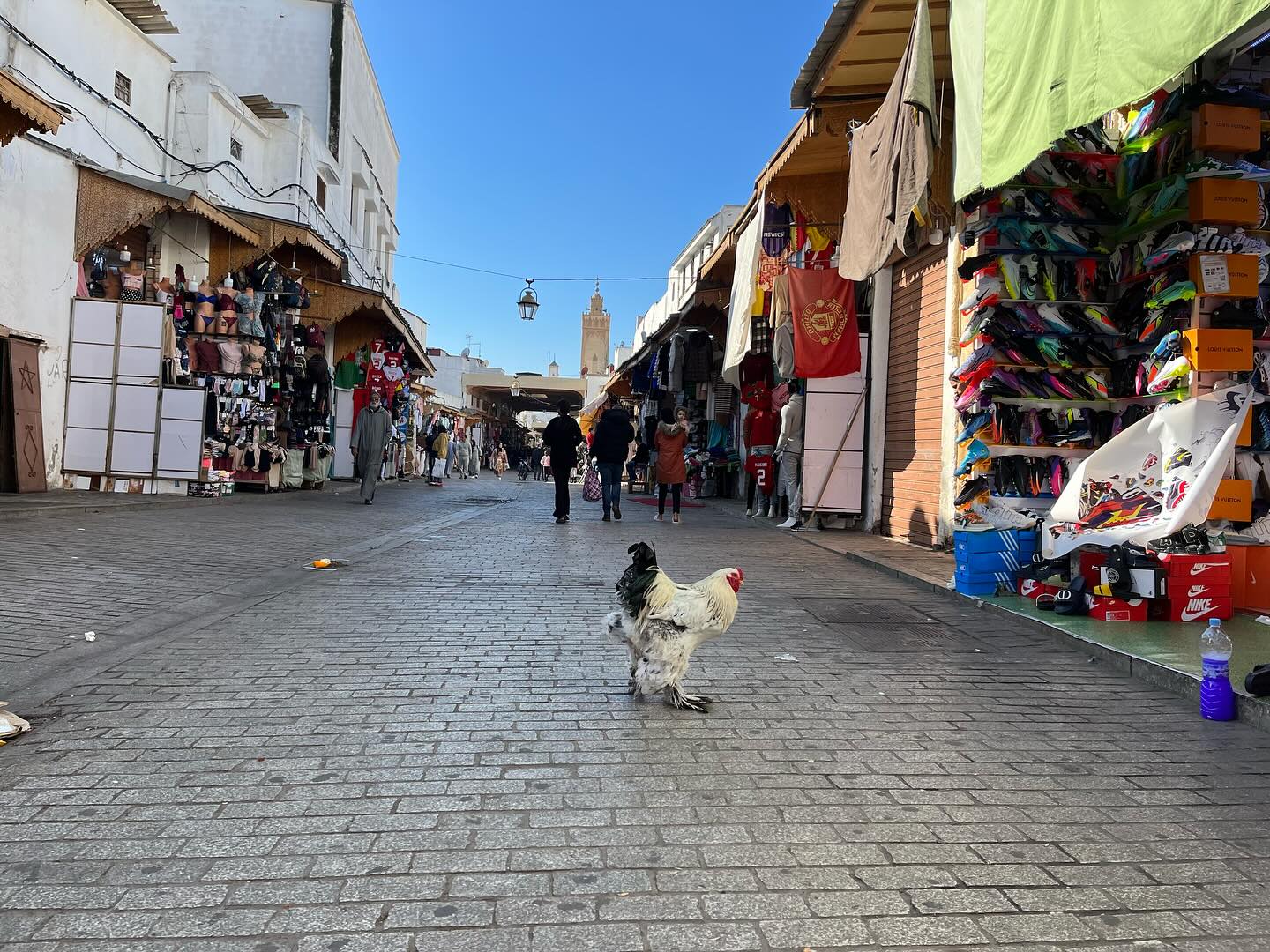 Marnix nam mij mee naar Rabat voor mijn eerste bezoek aan een medina. Een medina is vaak een ommuurde oude stad met verstrengelende steegjes waarin je makkelijk kunt verdwalen. Gebouwen met weer van die mooie gekleurde deuren en kraantjes met drukke tegeltjes. Toen Marnix er in december 2018 was, was het hier erg druk. Nu waren er heel veel winkeltjes gesloten en we vroegen ons af waarom. Kwam het door de coronatijd? Of was toevallig onze timing zo dat er zoveel toevallig dicht zat. Buiten de medina dobberden vissersbootjes in het water en vissers zaten aan de kant hun best te doen een geldbriefje (10 dirham) dat in het water was gevallen te vangen. Een mooie dag die toch wel erg warm was met onze lange broeken en shirts met lange mouwen. Je moet er wat voor over hebben uit respect voor de lokale cultuur.